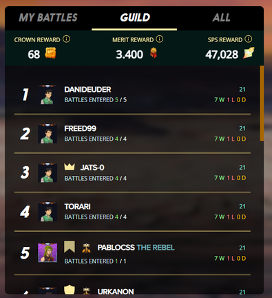Mis resultados en las batallas fueron buenos, solo perdí una batalla y terminé colándome entre los mejores jugadores de mi clan. La tendencia de mis compañeros fue la de perder una batalla, algo que es un poco gracioso.