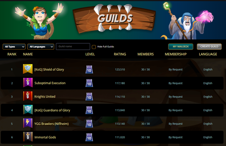 What would be the second most common type of leaderboard seen is the Guild leaderboard. Since the beginning of brawls where guilds are ranked based on their overall performance.