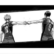 On the left is my drawing of Senku from Dr. Stone, and on the right is Sue's drawing of Josuke Higashitaka from Jojo's Bizarre Adventure. The pose was inspired by the iconic Hinata-Kageyama fist bump in Haikyuu! ^^