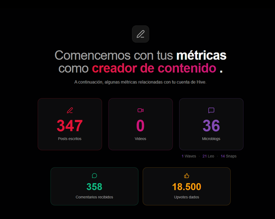 We are already in the final days of this year; it won't be long before our world completes another revolution around the sun; it's an excellent time to see what has been achieved. Thanks to the team at @hivecreatorsday, who created a website where we can see all our achievements on #Hive in detail.