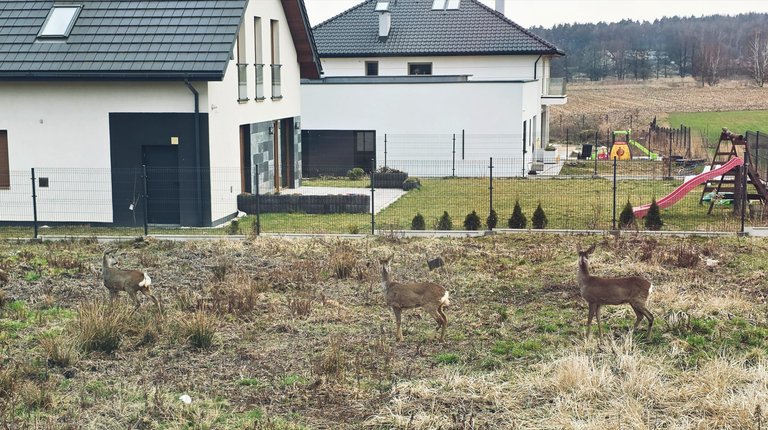 Po powrocie @sk1920 pojechaliśmy na budowę, odebrać dwie zmywarki do kuchni. A tam mieliśmy miłych gości w ogrodzie, a Bombel odkrył, że na budowie jest też plac zabaw.