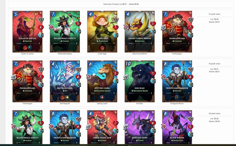 it to top 4 on silver rank so I got 4 foundation packs and 15 frontier entries. I got around #0.3 from the packs.