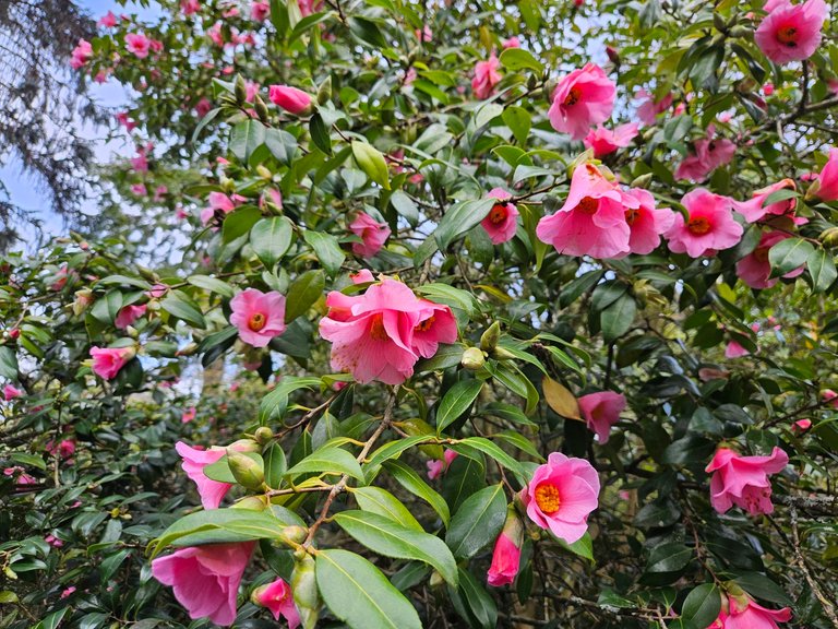 Petals were already dropping off this bush so it must have been in bloom a while already. Camelias always bloom very early indeed!