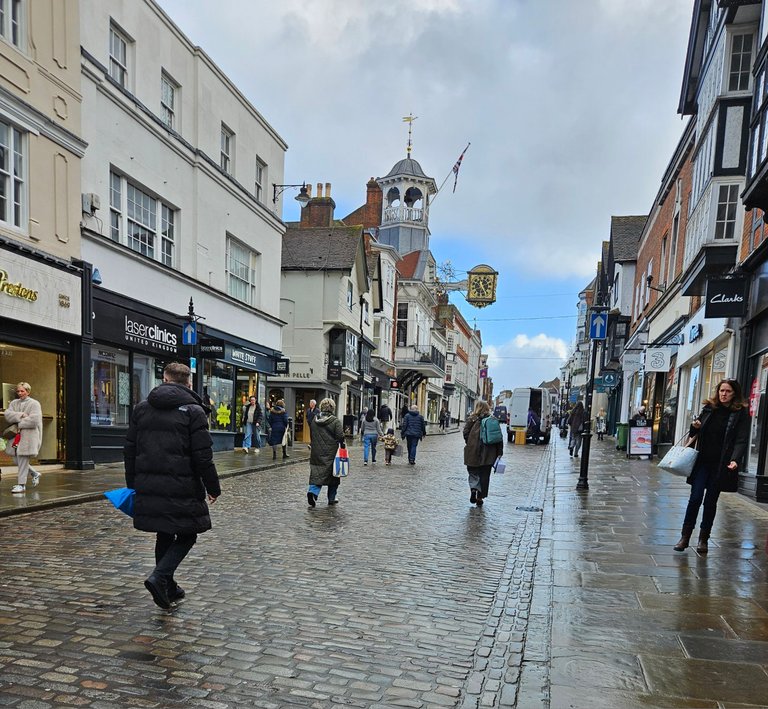Guildford is a town in southern England with a long hostory. It has a cathedral as well so I assume it can be classed as a city. The cathedral is some distance from the town centre so that could be the subject for another day π.