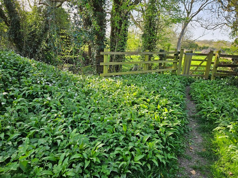 The wild garlic is beginning to flower now and is producing that very strong and unmistakable pungent aroma.