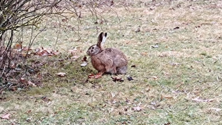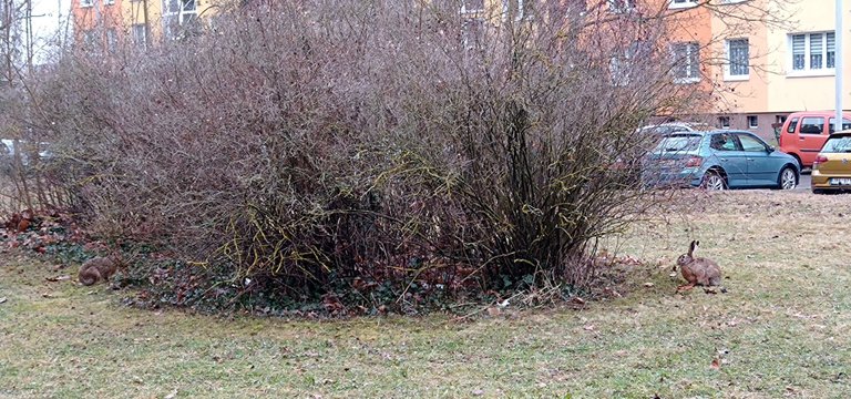 Na sídlišti jsme potkali zajíce. Zabydlují se tady hezky.