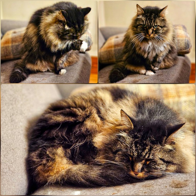 Before going for our daily walk yesterday, we checked on Le Chat. She was in the middle of a bath, and clearly annoyed. But that didn't last long, she was quickly back to sleep!