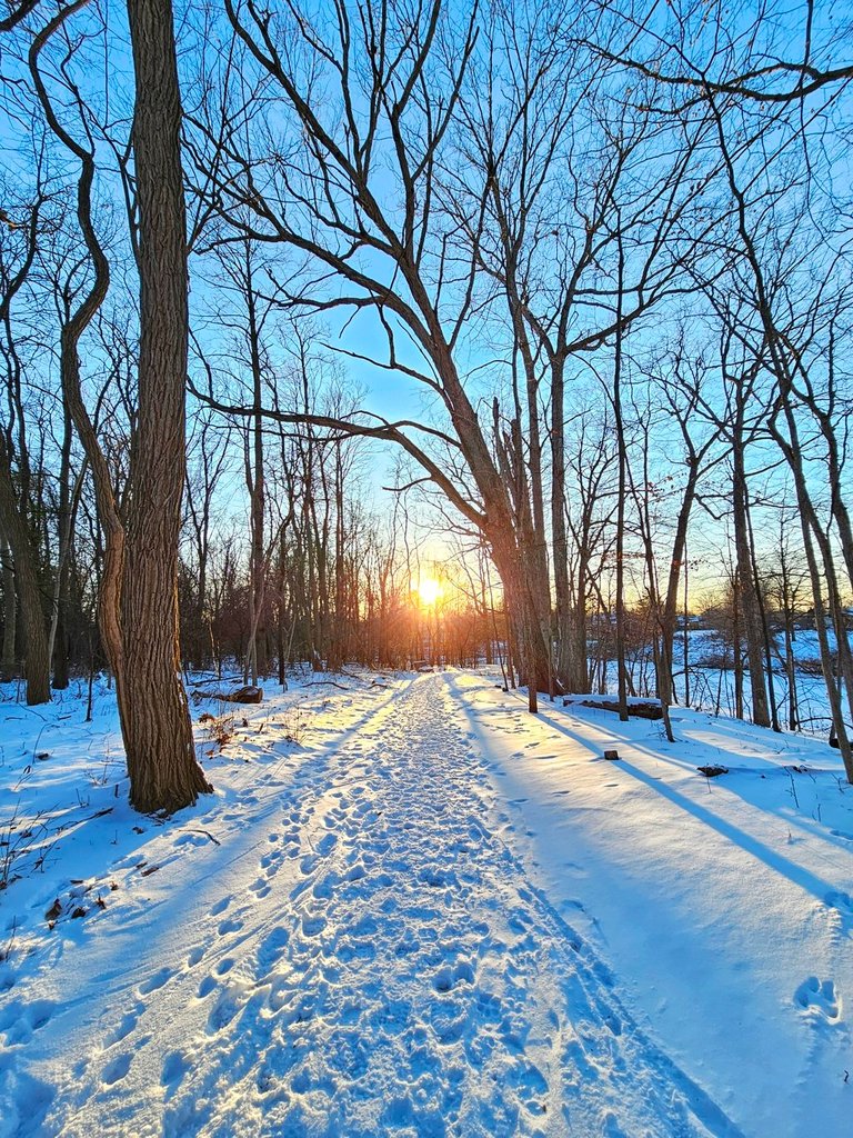 And I was right, when we got to Carpenter Lake Nature Preserve, all the clouds were gone and the sky was perfectly blue. I believe it's the first time we go to that park in winter, or at least when there's snow. Just to make sure we wouldn't miss it before it got dark, we started at the rock garden, the main attraction at that park.
