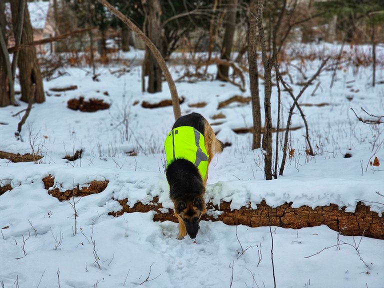 It's funny when Kaia wants to jump over obstacles and follow scents at the same time. You get a half jump/half sniff...