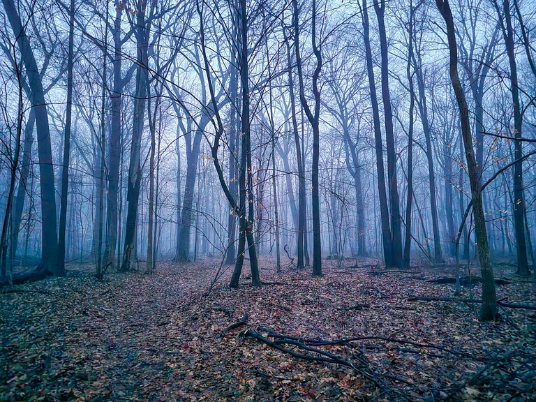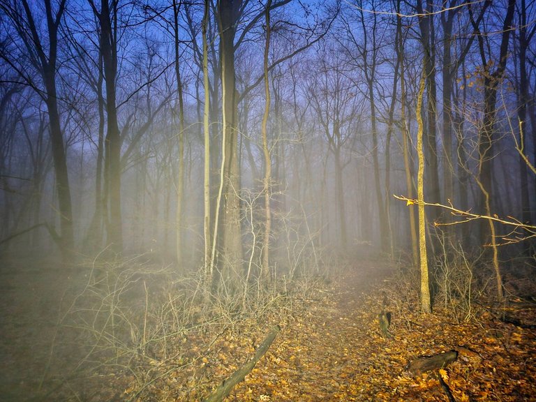 Without a light was actually better, it showed better the eeriness of the misty forest.
