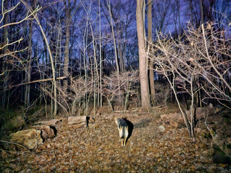 Yesterday didn't go as planned. It was quite busy at work and a bunch of unplanned phone calls and meetings kept derailing our long daily walk. In the end, it was long after sundown when we finally started.
