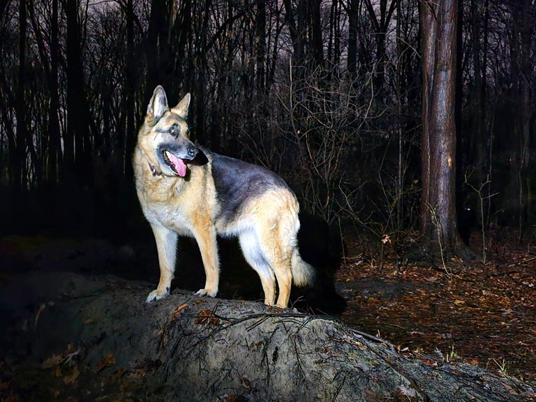 Well it didn't stop until much later, there wasn't much motivation but Kaia deserved her daily long walk, so here we were in the night on our way to the forest.