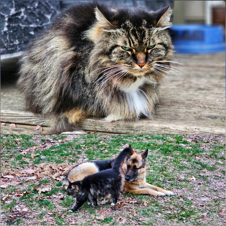 Yesterday was again mostly grey and kind of rainy, so Le Chat was waiting for her chance to go bother Kaia in the yard, with one of her infamous look of course.