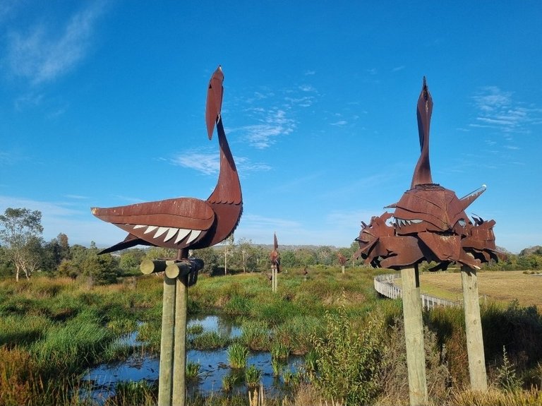 My morning run past a few big sculptures, I nice little path, through the a marsh and along a creek.