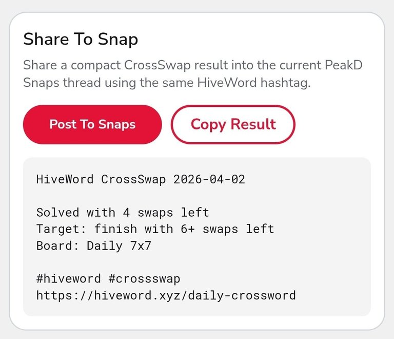 My best result in cross swap as well, getting it out with 4 goes left. It works well on my phone too, which should help when we are out and about
