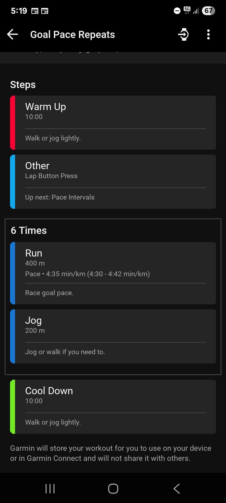 I started a new running program based on my watch and garmin. This one is more focused on getting a faster time for a 5 km parkrun.