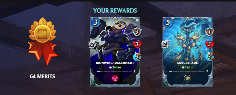 In the screenshot below you can see that I also reached a new league where I won 64 merits and two common cards from the Conclave Arcana set. I am happy to add them to my Conclave Arcana collection.